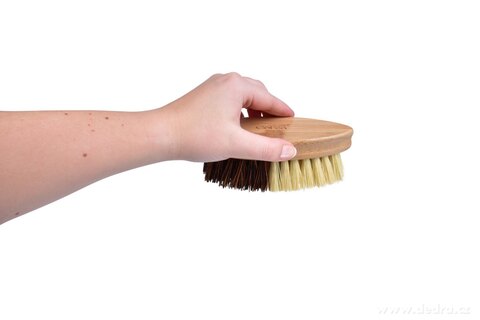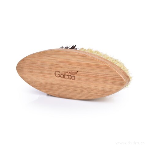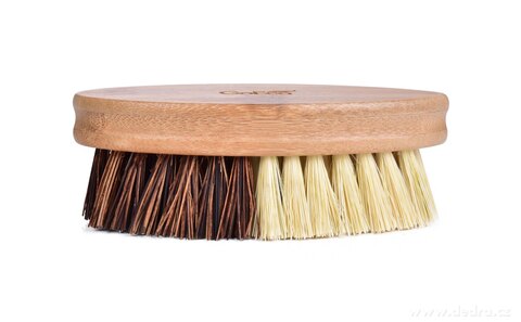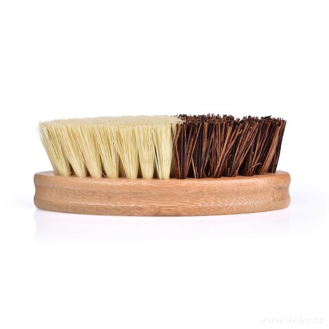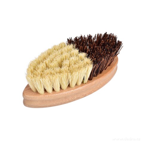 Bambusový kartáč se štětinami ze sisalových a palmových vláken na čištění a úklid, d 13 x š 5,5 x v 4,5 cm.