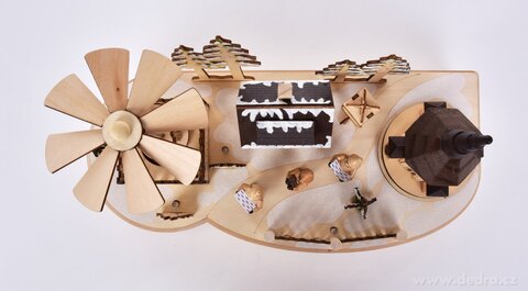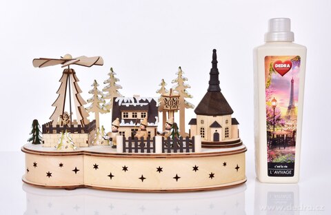 ZIMNÍ VESNIČKA S KOLOTOČEM a LED osvětlením. Dřevěná detailně propracovaná dekorace.