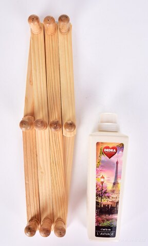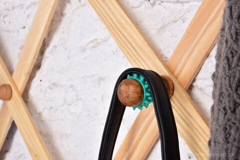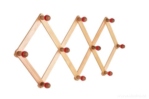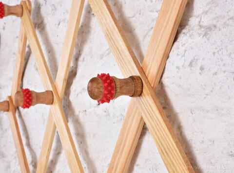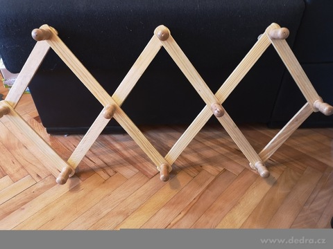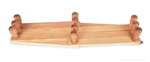 ROZKLÁDACÍ VĚŠÁK z borovicového dřeva s 10 dřevěnými háčky na pověšení.