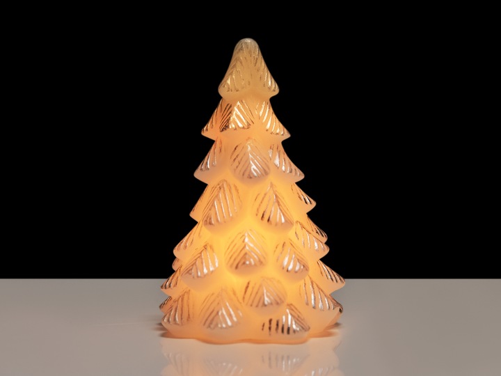 Stříbrně zdobený voskový stromek se rozsvítí jemným teplým světlem a vytvoří kouzelnou atmosféru klidu. Elegantní vánoční dekorace se stříbrným finišem okouzlí svým přirozeným vzhledem a hebkým světlem.