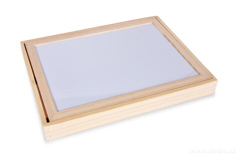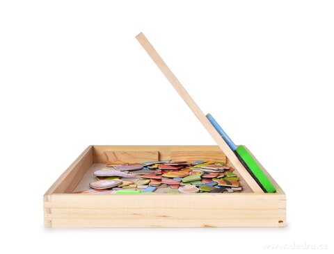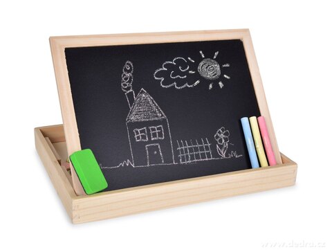 3v1 stolní oboustranná magnetická kreslící tabule, přírodní dřevěná. Rozměry: š 29,5 x h 23 x v 3 cm (rozložená 18,5 cm),