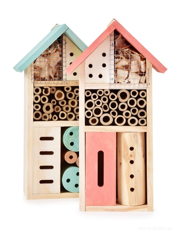 Na zadní straně má domeček praktický háček na zavěšení, takže ho snadno umístíš na strom, plot nebo zeď. Přírodní materiál v kombinaci s barevným čelním panelem působí dekorativně a zároveň harmonicky zapadne do prostředí zahrady.