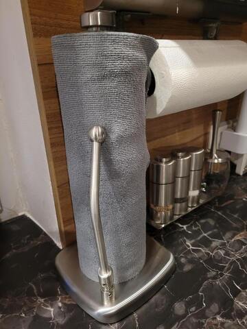 Proměň obyčejné kuchyňské utěrky ve stylový a funkční doplněk linky! Vyroben z masivní nerezové oceli drží roli pevně na místě, přičemž pružné přítlačné rameno zabrání nechtěnému rozmotání – takže utrhneš přesně tolik, kolik potřebuješ, a bez boje.