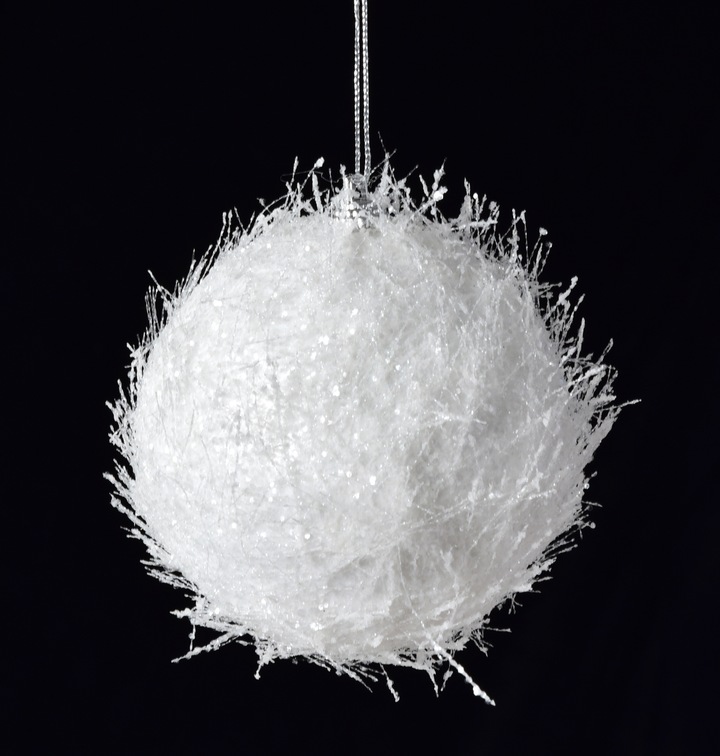 POLÁRNÍ KRYSTALY – kouzlo zimního ticha v jedinečné podobě. Tyto velké dekorativní koule v zářivě bílé barvě jsou zdobené jemnými vlákny a třpytivým povrchem, který připomíná sněhovou vločku pod mikroskopem.