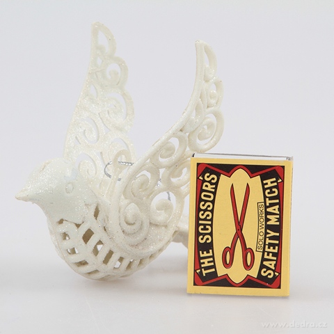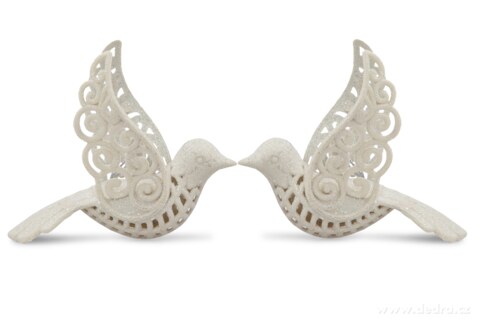 2 ks smetanových třpytivých holubiček krajkového vzhledu,