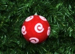 1 ks červená koule zdobená bílou spirálou, průměr 8,5 cm.