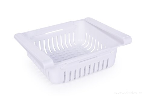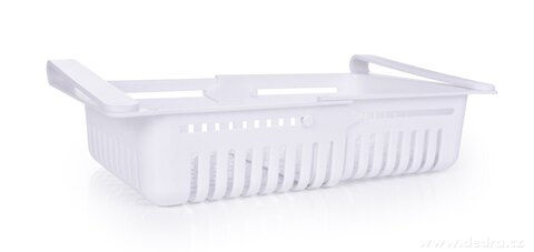 Závěsný košík do lednice nastavitelný na šířku 20–28 cm. Snadno se zavěsí pod polici, šetří místo a udrží sýry, uzeniny či zeleninu přehledně uspořádané.