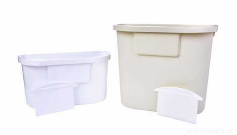 Závěsný odpadkový koš na dvířka kuchyňské linky s praktickou stěrkou pro snadné shrnutí zbytků potravin
