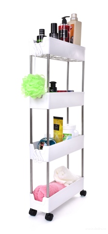 Pojízdný regál do úzkých prostor, snadné vysouvání díky 4 pojezdovým kolečkům ve spodní části. Využiješ ho na hluchá místa a rozšíříš si tak úložný prostor například vedle kuchyňské linky, pračky, ale i v dětském pokoji či pracovně 👍