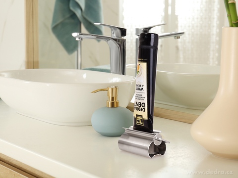 Praktická TUBOTLAČKA z masivní nerezové oceli slouží jako vytlačovač i stojan na zubní pasty, krémy či balzámy. Zabraňuje plýtvání – vytlačí obsah tuby do poslední kapky. Vhodná pro malé i velké tuby do šířky 8 cm.