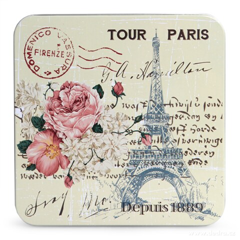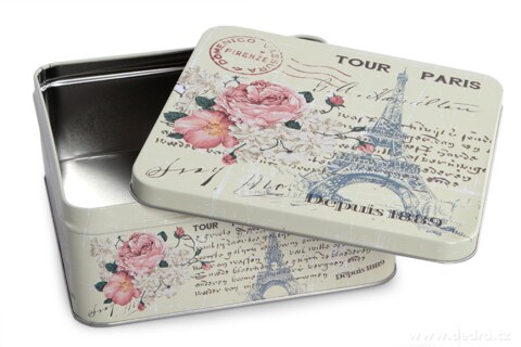 Čtvercová kovová dóza s víkem TOUR PARIS.