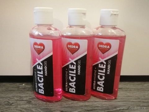SADA 2+1 ZDARMA čisticí gel na ruce HANDGEL BACILEX® ULTRAHYGIENE+ obsahuje 70 % alkoholu, 3x100 ml., s PŘÍJEMNOU dámskou parfemací: ovocná, s tóny vanilky, dřevitá, dámská.