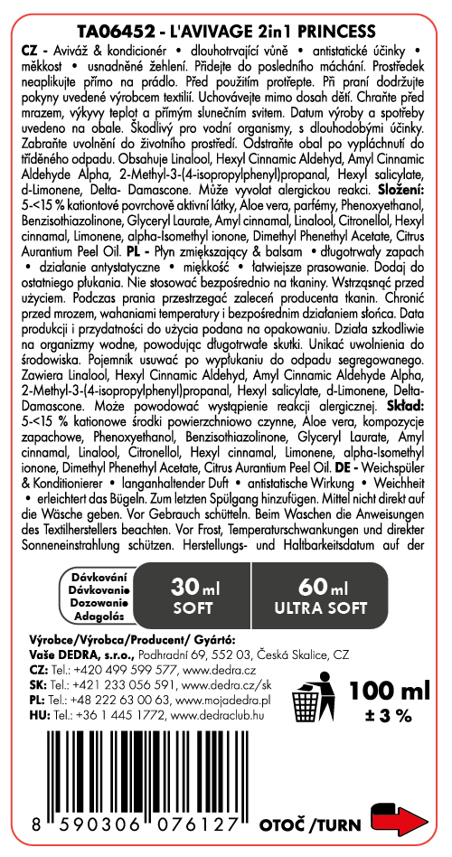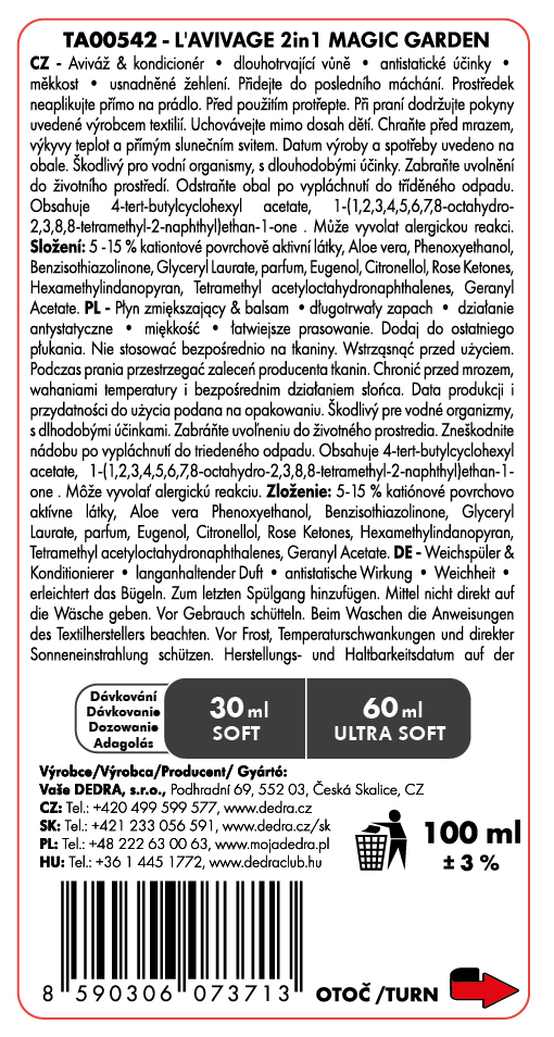 Výrobce / dovozce: Vaše Dedra s. r. o., Podhradní 69, Česká Skalice, Česká republika