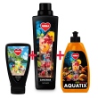 SADA obsahuje: 1 x avivážní kondicionér L’AVIVAGE 2in1 750 ml, 1 x koncentrát na nádobí ECOultra AQUATIX® 500 ml, 1 x pěnivý sprchový gel 250 ml.