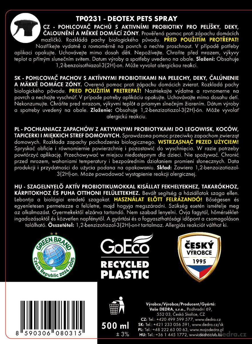 Výrobce: Vaše Dedra s. r. o., Podhradní 69, Česká Skalice, Česká republika