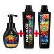 VOŇAVÁ SADA obsahuje: 1 x pěnové mýdlo na ruce i tělo 300 ml, 1 x EKO parfém na praní PARFUMAGE® 750 ml, 1 x avivážní kondicionér L’AVIVAGE 2in1 750 ml.
