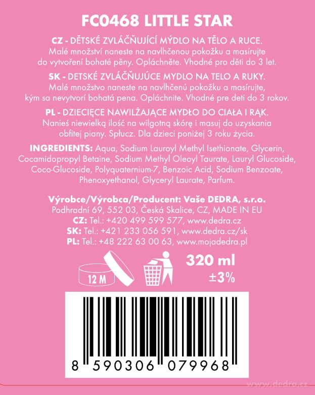 Výrobce / dovozce: Vaše Dedra s. r. o., Podhradní 69, Česká Skalice, Česká republika