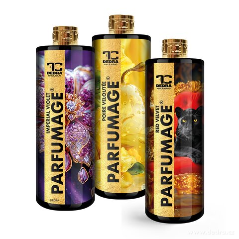 Rodinné balení PARFUMAGE – parfémy na praní a úklid IMPERIAL VIOLET, SAMETOVÁ HRUŠKA a RED VELVET. Tři oblíbené vůně pro svěží prádlo i domácnost. Praktická volba pro každodenní praní a úklid s dlouhotrvajícím vonným efektem.