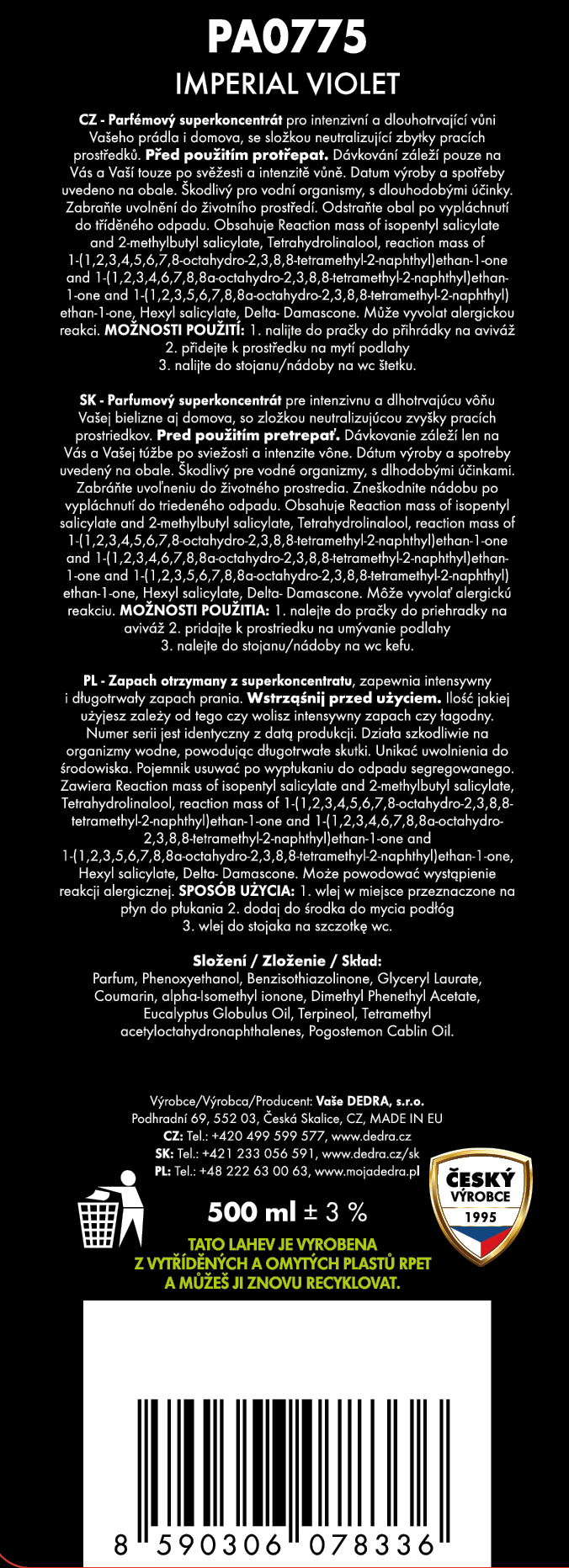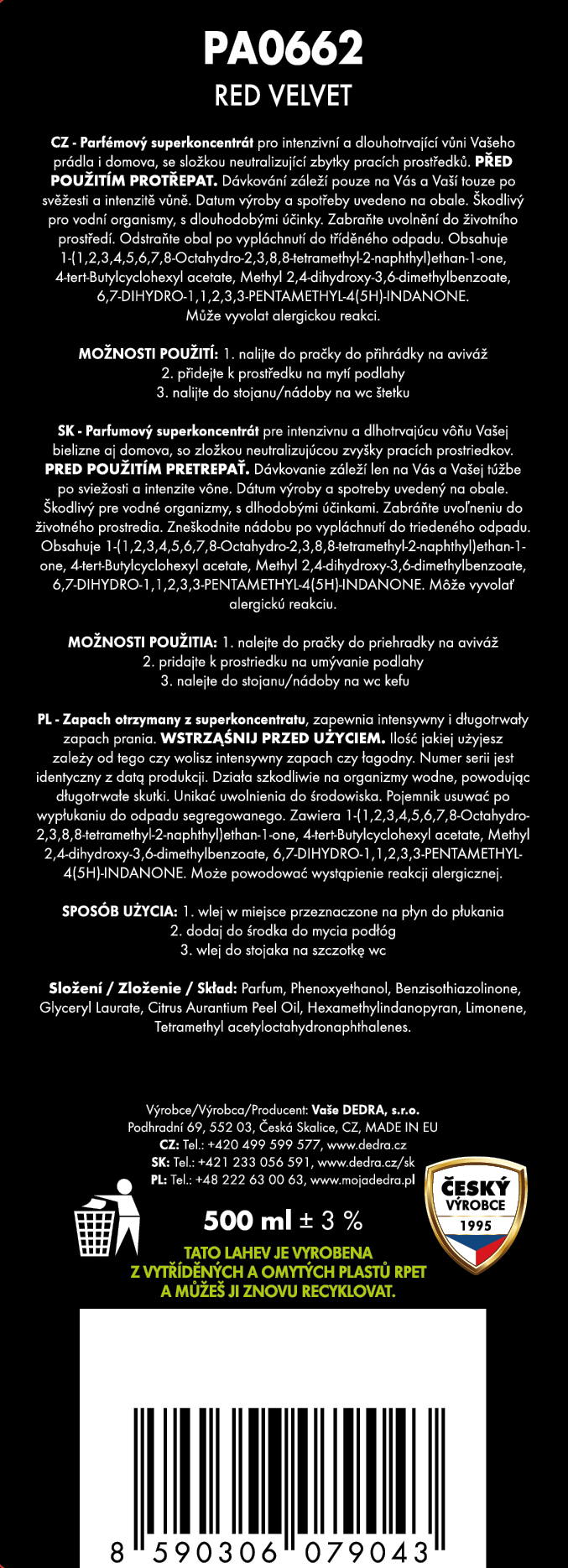 Výrobce / dovozce: Vaše Dedra s. r. o., Podhradní 69, Česká Skalice, Česká republika