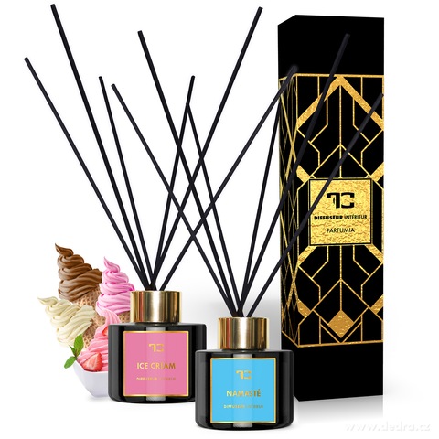Sada 1+1 ZDARMA tyčinkových difuzérů 2×100 ml je ideální volbou pro dlouhotrvající vůni domova. Elegantní aroma směsi v designových flakonech provoní interiér a dodají mu příjemnou atmosféru. Skvělá volba jako dárek i pro každodenní použití.