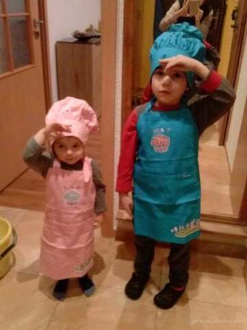 Pomáhají Ti děti rády v kuchyni, pořiď jim praktickou zástěru a kuchařskou čepici a vaření je bude bavit o to víc a navíc si neušpiní oblečení.