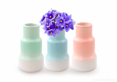 HOME SWEET HOME, JEDNODUCHÝ MODERNÍ STYL, UPOUTÁ NA PRVNÍ POHLED. KERAMICKÁ VÁZA stupňovitého tvaru v módních pastelových barvách z keramiky. Matný finiš povrchu. Rozměr: průměr spodní části 7 cm, průměr horní části 4,5 cm, v 13 cm PASTELOVÉ BARVY INTERIÉR PROJASŇUJÍ A PROVZDUŠŇUJÍ, SPOJENÍ PASTELOVÉ MODRÉ A TEPLEJŠÍ PUDROVÉUKLIDŇUJE A POZITIVNĚ ...