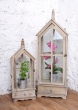 Dřevěná lucerna/skleník se skleněnými výplněmi ve tvaru domku s věžičkou, dobová patina, otvírací dvířka opatřená kovovou západkou, ve spodní části funkční šuplík.