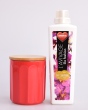Keramická dóza s masivním víkem z vysokotlakého bambusu a silikonovým těsněním, výška 13 cm, průměr 10 cm, max. objem: 670 ml.