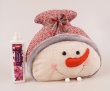 Velký dekorativní froté polštář ve tvaru hlavy sněhuláka s mašlí na čepici,