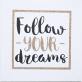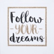 Obraz na plátně s glitter efektem a nápisem Follow your dreams o rozměru 28 x 28 cm