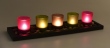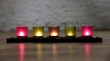 5 ks skleněných svícnů na dřevěném podstavci s dekorativními kameny,