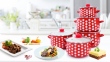 10 dílná sada smaltovaných hrnců s puntíky a skleněnými poklicemi s otvorem pro odvod páry.