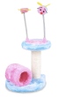 Kočičí škrabadlo s tunelem a dvěma hračkami na pružném pérku.