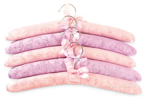 5 ks textilních polstrovaných ramínek fialové a růžové