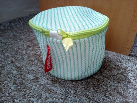 Prací košíček MOHAIRA (⌀16 cm) ze sendvičové síťoviny chrání podprsenky a jemné prádlo před poškozením v pračce. Zip se skrytým jezdcem nepoškrábe buben. Vhodný i na praní roušek či prádélek se šňůrkami.