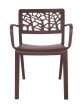 Z polykarbonátu, snadno stohovatelné, š 56 x h 52 x v 81,5cm (výška sedu 47 cm, hloubka sedu cca 42 cm, nosnost 150 kg sedícího člověka).
