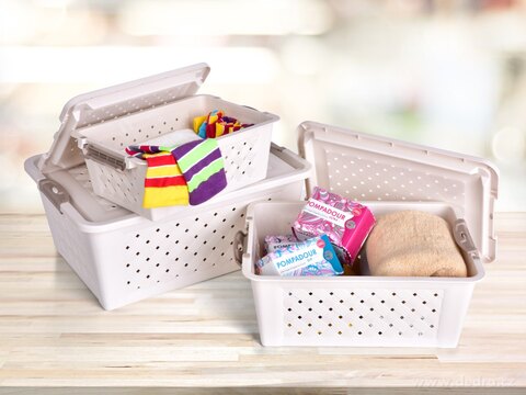Praktický úložný box se v domácnosti hodí vždy a na všechno! Využiješ na kosmetické drobnosti, pletení či šití nebo na drobné hračky, na čisticí a úklidové prostředky a další věci v domácnosti.