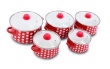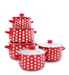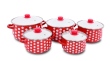10 dílná sada smaltovaných hrnců s puntíky a skleněnými poklicemi s otvorem pro odvod páry.