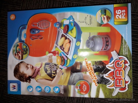 BBQ GRIL, dětský grilovací set s reálným zvukem grilování a osvětlením grilu, bohaté příslušenství, lze sbalit do kufříku pro snadné přenášení.