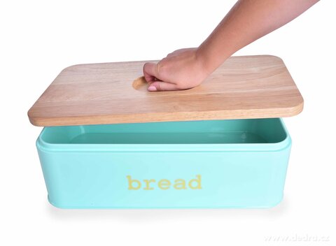 Chlebník MINT BREAD kovový s víkem z masivního dřeva, které slouží jako prkénko na krájení uloženého pečiva.