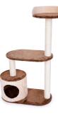 Kočičí škrabadlo/prolézačka ve smetanově čokoládové barvě, dvoupatrové s odpočívadly. Vyrobeno z jemného mikroplyše a sisalu.