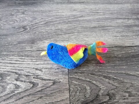 MODRÝ PTÁČEK, barevný plyšový ptáček pro vaše mazlíčky, který při
