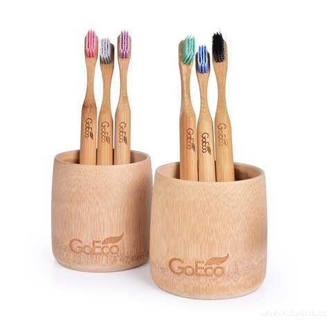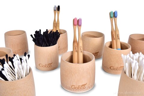 Bambusový stojánek GoEco® z přírodního surového bambusu je ideální na zubní kartáčky, uchošťoury nebo drobné koupelnové potřeby. Přírodní materiál je odolný, ekologický a stylový. Stojánek udrží koupelnu přehlednou a elegantní. Snadno se čistí a dlouho vydrží.