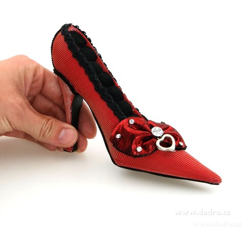 Elegantní bordó střevíc jako stojánek na prsteny, výška: 11 cm.