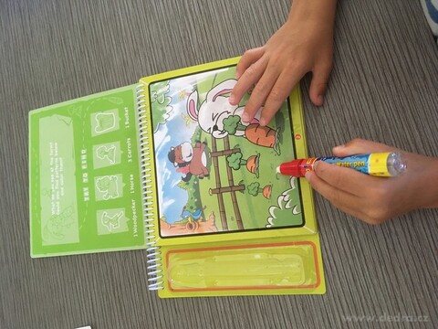 Zábavné a čisté vodní malování! Objev svět zvířátek pomocí kouzelného vodního pera. Naplň pero vodou a začni kreslit po lehce viditelném obrázku. Každým tahem se začnou objevovat části obrázku víc a víc až nakonec uvidíš celý obrázek v zářivých barvách. Po uschnutí jsou obrázky opět „neviditelné“ a ty je můžeš znovu a znovu objevovat!