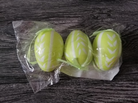 3 ks malovaná velikonoční vajíčka/kraslice, závěsná dekorace, plastová.