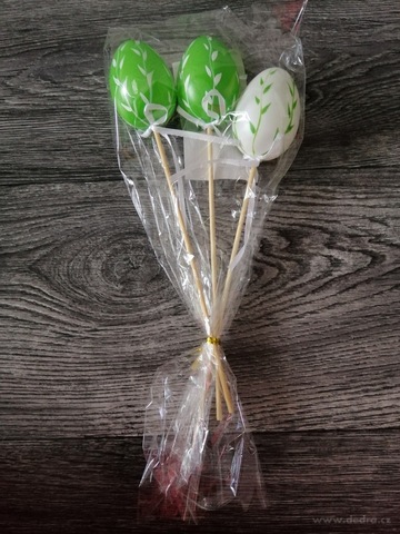 3 ks malovaná plastová vajíčka/kraslice na špejli, zápich. Velikonoční přízdoba do dekorací, vhodné k nejrůznějšímu aranžování.
