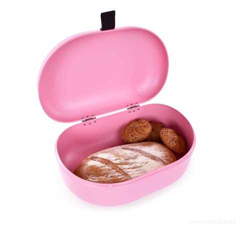 Kovový chlebník PASTEL BREAD s odklápěcím víkem pro snadný přístup k pečivu v originálním designu.