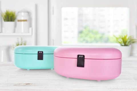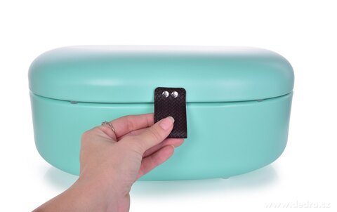 Kovový chlebník PASTEL BREAD s odklápěcím víkem pro snadný přístup k pečivu v originálním designu.
