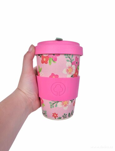 hrnek a šroubovací víko s bambusovou vlákninou, se silikonovým odnímatelným protiskluzovým středovým páskem. Víčko s vnitřním silikonovým těsněním. Rozměr: max. průměr 9,5 cm, spodní průměr 6 cm, výška s víkem 13,5 cm.